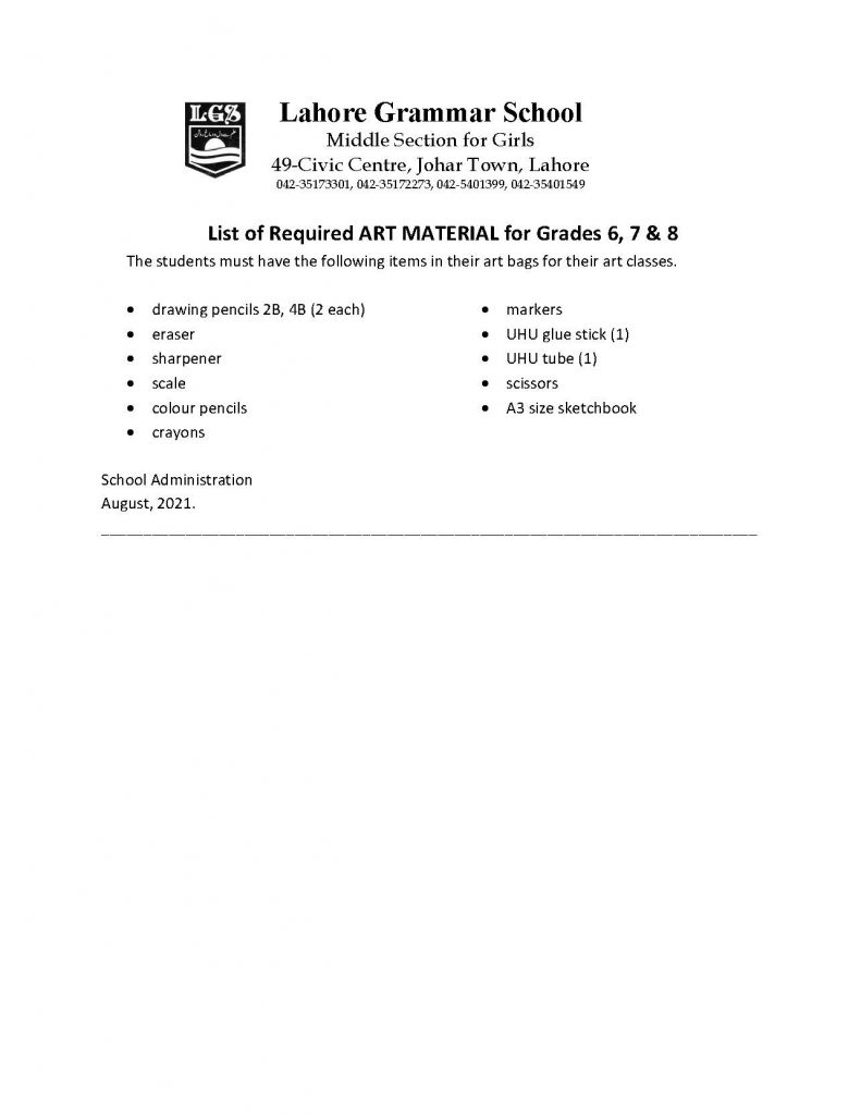 Art Pack-Grade 6, 7 & 8